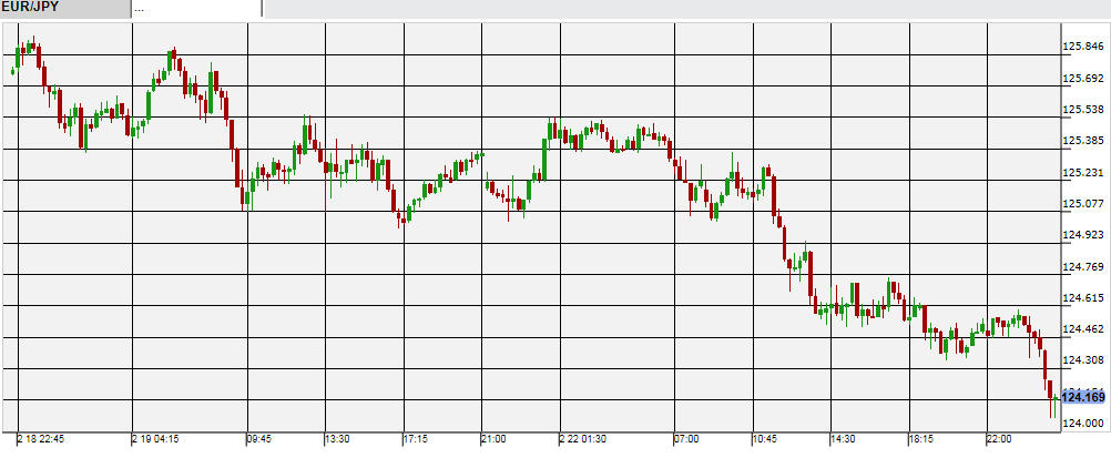 イギリスのEU離脱懸念は、ユーロの将来にも暗雲をもたらしている。ユーロ/円はロンドン市長の発言などを受けて22日に大きくユーロ安に動いた。またECBによる追加緩和観測が高まっていることも、ユーロ安に拍車をかけている。ユーロ/円は23日未明までに124円台前半に下落し、この水準は2013年4月以来約3年ぶりとなる。