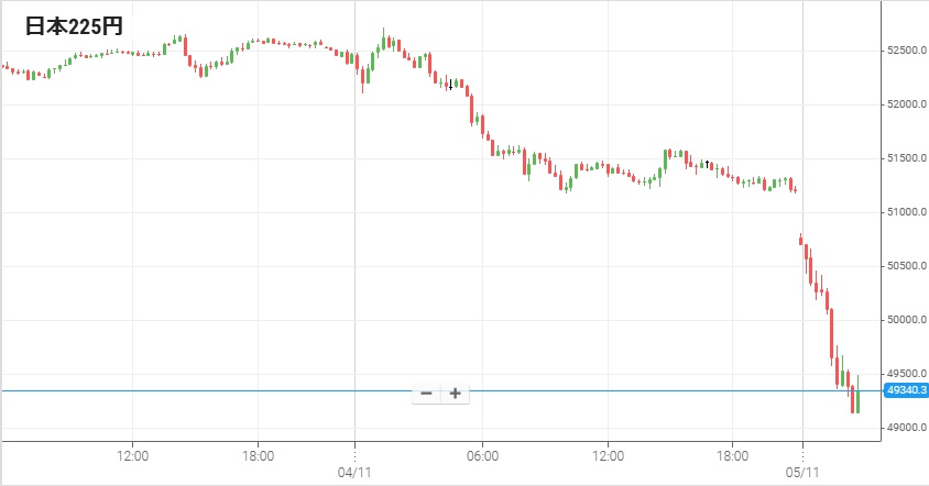 高市政権の政策への期待や米中が貿易問題で合意したことなどを受け、先週の東証は日経225平均が3,112円高の歴史的な相場で終了。しかし3連休が明けた4日には先週の勢いは持続できなかった。この日は118円安の52,294円で寄り付き、前場は一旦52,600円台まで上昇して場中の最高値を更新。しかしそこを天井にその後は大きく崩れ、前場の残り時間から後場にかけて1,000円以上暴落して終値は914円安の51,497円だった。
