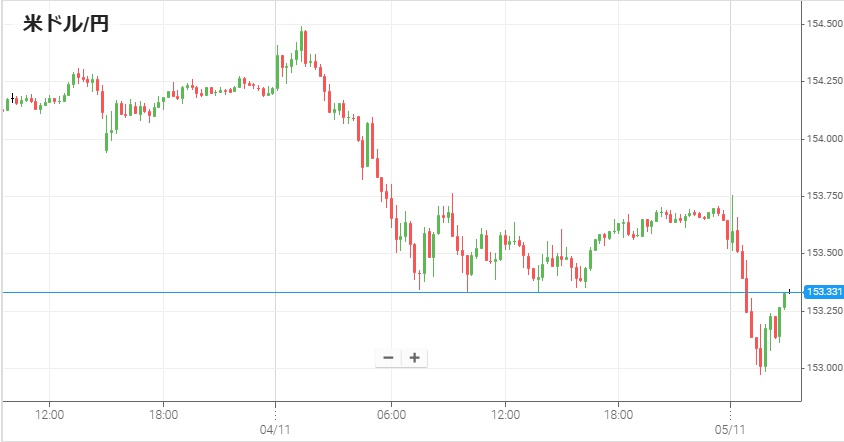 3日は日本が文化の日で祝日あったこともあり、この日の米ドル/円は大きく動かず終日1ドル=154円付近で推移。4日午前にはさらに円安になり154円50銭に接近したものの、午前中に片山財務相が円安をけん制する発言を行ったことで午後にかけて1円ほど円高に動いた。その後は夕方から夜、そして5日未明にかけて大きな動きはなく、153円台半ばに留まった。
