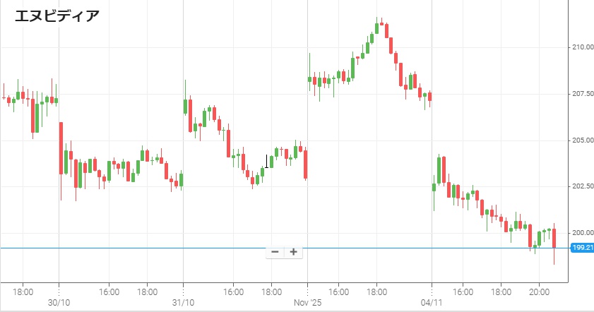 先月に世界で初めて時価総額5兆ドル企業となったエヌビディアはAI銘柄の代表的存在としてAIへの期待から買われてきた。しかしここ最近の上がり過ぎ感や、AIの過剰な期待への警戒感などから4日になると下落。前日の終値は206.88ドルだった同社の株は4日は序盤からマイナス圏で推移し、中盤から終盤にかけて緩やかな下げが続き200ドルを割って4%安の198.69ドルで終了。時価総額も5兆ドルを割った。