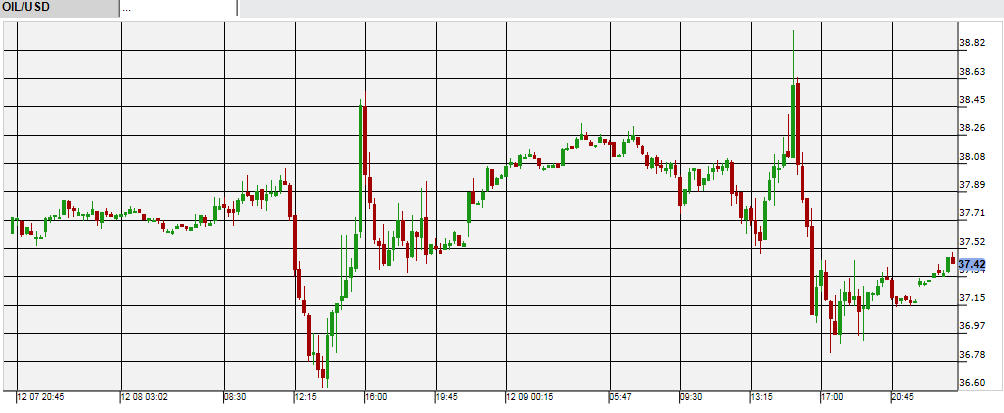 米エネルギー情報局(EIA)が9日、週間原油在庫を発表。予想の前週比30万バレル増に対し、発表は360万バレル減だった。ここで在庫が増えていれば怒涛の売りが原油に入った可能性があったが、在庫減のため一時上昇して38ドル台後半に。しかし下落トレンドは止まらず、その後下げに転じてまたも36ドル台をつける場面もあった。