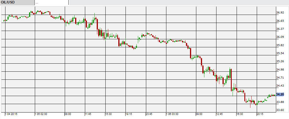 6日には米エネルギー情報局(EIA)が、週間原油在庫を発表。原油在庫は予想の40万バレル増に対し、発表は510万バレル減と大きく減少していた。しかしその一方で、ガソリン在庫が予想の230万バレル増に対し発表は1060万バレルも増えた。ガソリン在庫の大幅増を受け、NY先物市場では原油が急落。一時33ドル台をつけ、リーマンショック直後の2009年1月以来7年ぶりの低水準となった。
