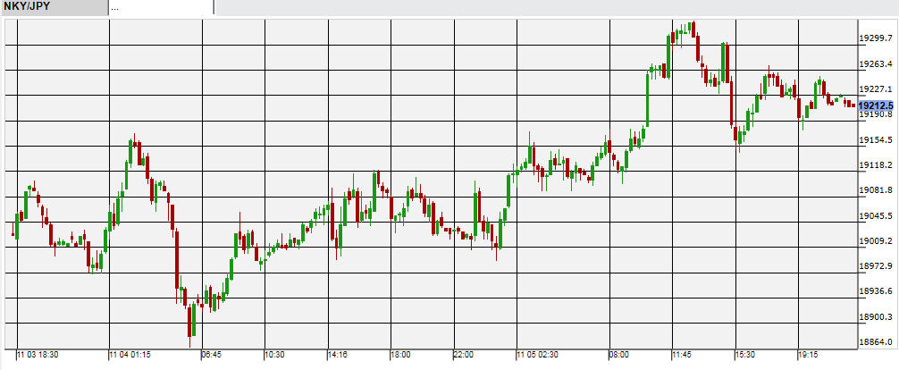 日本郵政グループ3社が前日に上場した国内株式市場は、5日も円安などを受けて続伸。前日比103円高の19,029円で寄り付いた日経225平均は、場中にも買いが優勢となり終値は190円高の19,116円だった。また上場2日目となった日本郵政グループ3社は、全て前日より高い価格で終了した。夕方以降の先物の時間も円安の進行などから日経225先物が上昇。19,200円台で推移したまま6日朝を迎えた。