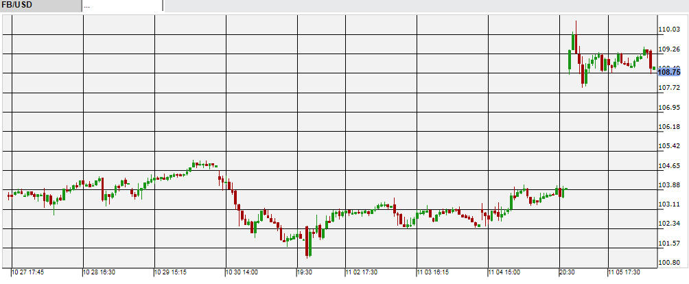 前日4日の株式市場後に、Facebookが7~9月期の決算を発表。売上が前年同期比で40%増、純利益が11%増という好調な数字だった。これを受けて5日はFacebook株が買われ、一時上場以来最高値となる110ドルをつける。終値でも前日比4.6%高の108.76という最高値をつけた。