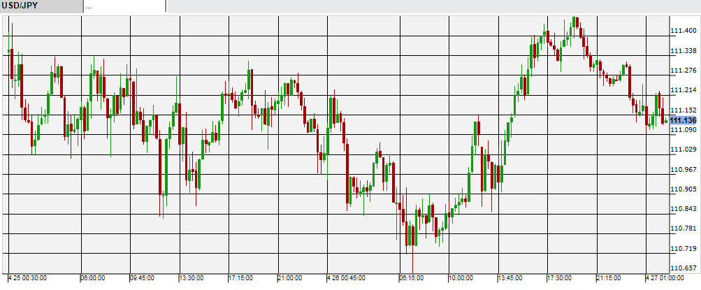 26日から米FOMCが始まり、27日には日銀金融政策決定会合が始まる。日銀は追加緩和を発表する可能性があり、またFRBは追加利上げがあるかどうかが焦点になっている。これらの政策への期待から26日夕方過ぎには円安・米ドル高が進行し、111円高半ばまで多少の上昇を見せた。