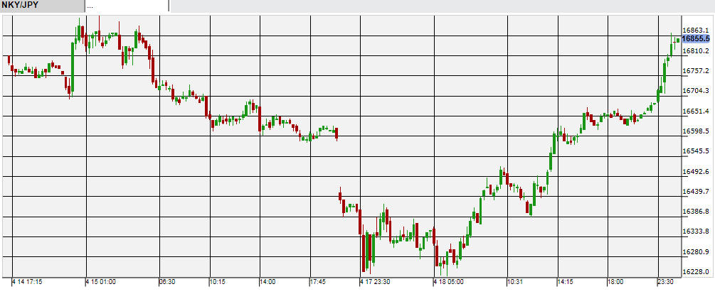 14日夜と16日未明に起こった熊本地震の影響が、週明け18日の国内株式市場に出てきた。また原油の生産量凍結見送りからきた原油安もあり、18日の日経225平均は前日比300円以上安い16,521円でスタート。寄り付き直後にさらに下落し、終日16,300円前後で推移した後、16,275円と前日比572円安で終了した。ただ夕方以降の先物の時間は円安と欧米株高が進行したため、19日朝までに16,500円台を回復。