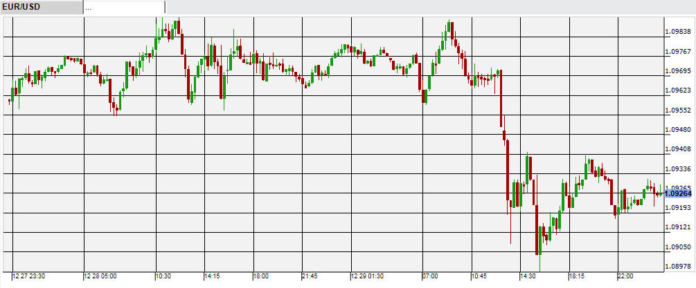 外国為替市場も全体的に材料の少ない1日であり、アメリカやユーロ圏の経済指標発表はなかった。だが年末にかけたポジション調整的なユーロ売り・米ドル買いの動きが29日の午後9時以降にあり、ユーロ/米ドルは夕方の1.09台後半から30日未明には1.09付近までユーロ安となった。