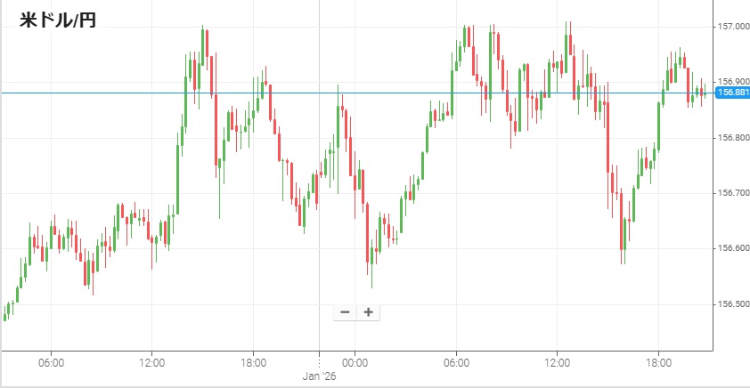 為替市場も2日から取引を再開したが、まだ新年で材料や参加者が少ないこともあり動きのあまりない市場となった。1ドル=156円70銭付近から今年の取引をスタートさせた米ドル/円は、日中は特に材料がなく156円台後半で上下。午後11時45分には米12月製造業PMIが発表され予想通りの51.8だったものの、発表後には数十銭ほど円高が進行したが数時間後には発表前の水準まで戻ってきた。