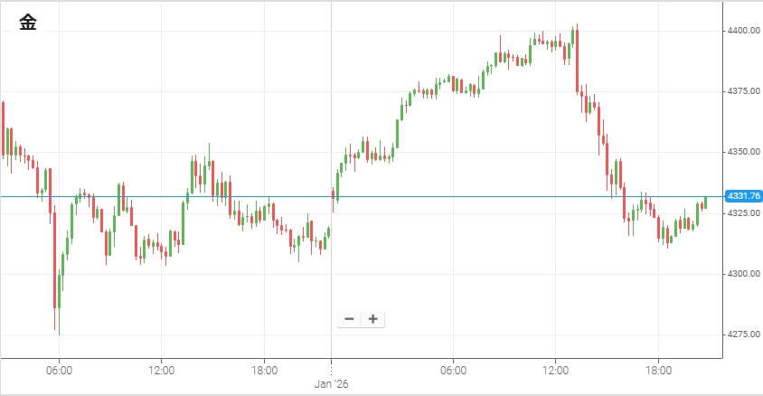 米ドルと反対に動くことが多い金だが、新年初日はそのセオリー通りに動かなかった。昨年最後の週はやや荒い動きだったNY金は、4,320ドル付近から今年をスタート。日中は米ドルの上昇と同様に上昇し、午後9時頃には一旦4,400ドルを回復。だがその後3日未明にかけて大幅反落して2日朝方の水準付近まで戻ってきた。