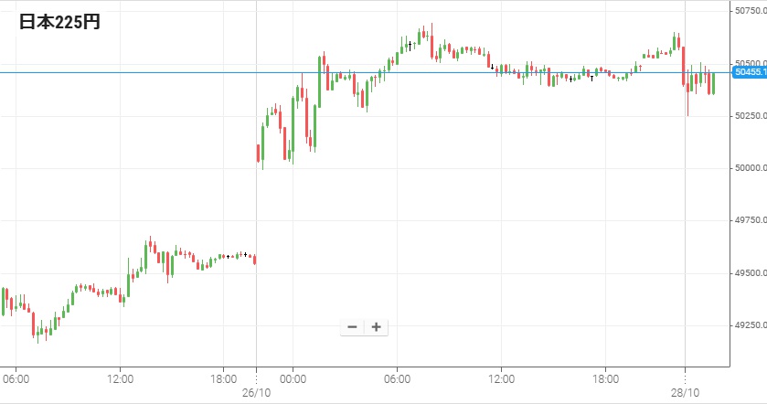 週末中の26日にマレーシアで米中閣僚級会談が行われ、会談後には先日発表された米による対中100%追加関税や中国のレアアース輸出規制が延期されると発表された。これによって米中間の緊張緩和が進むとの観測が高まり、週明け27日の東証は全面高。日経225平均は史上初めて50,000円を超えた。そのような状況だが27日には米経済指標の発表はなかったものの、米中の緊張緩和を受けてNY株式市場は堅調な展開となりダウ工業平均は337ドル高で終了した。