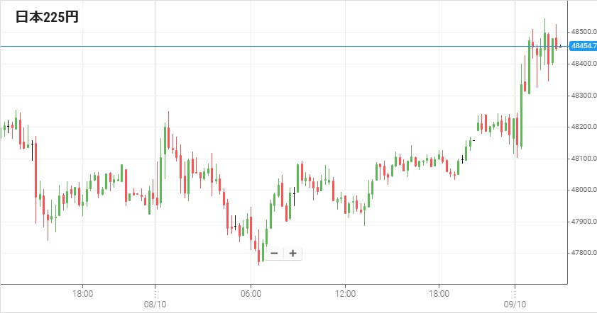 高市総裁就任によって今週の6日月曜には大暴騰した日経225平均だが、翌7日にはわずかな上昇に留まり8日も調整相場となった。この日の東証では25円安の47,925円で寄り付き、寄り後しばらくは上昇して48,100円を回復したものの前場の残り時間から後場にかけて下落。終値は217円安の47,734円で、高市総裁就任後初のマイナス引けとなった。夕方以降の先物はしばらくの間場中終値付近に留まっていたが、夜から9日未明にかけて上昇している。