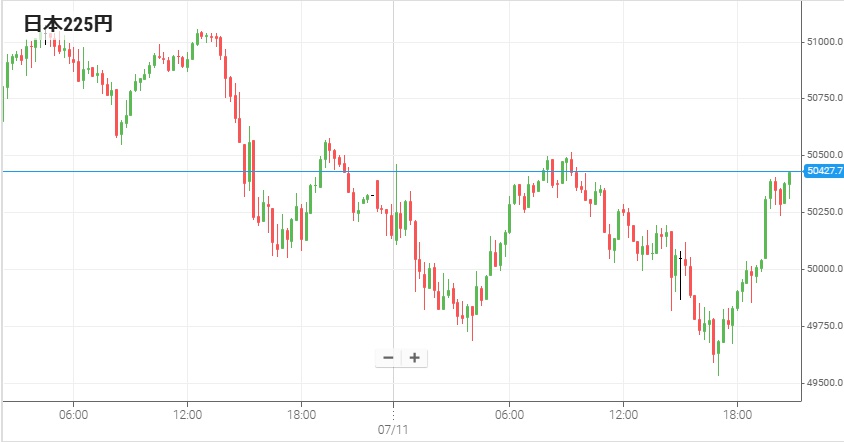 先週は週足で3,112円高と歴史的な暴騰相場になった日経225平均だが、今週はその反動で6日木曜を除き連日暴落となった。7日は359円安の50,524円で寄り付き、前場に大きく崩れて下げ幅が1,000円を超えた。後場開始直後に続落して一時は1,200円超安となったものの、そこで下げ止まり後場の残り時間はリバウンドして終値は607円安の50,276円。週足では2,134円もの暴落となった。