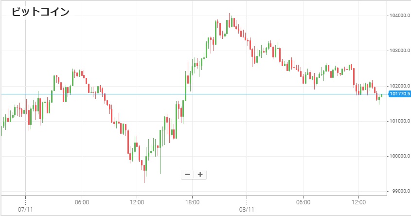 先月10日にトランプ大統領が対中100%追加関税を発表し、その影響で仮想通貨市場が急落して200億ドルもの強制決済が発生した頃から仮想通貨市場は軟調な動きが続いている。7日朝方に1,550万円だったビットコインは午前中から正午過ぎにかけて上昇したものの、夕方に1,520万円まで下落。今週5日につけた1,515万円の安値とほぼ同じ水準となった。その後は夜から8日未明にかけて1,600万円付近まで猛反発した後、8日日中以降は緩やかに下げている。(注:チャートは米ドル表記です)
