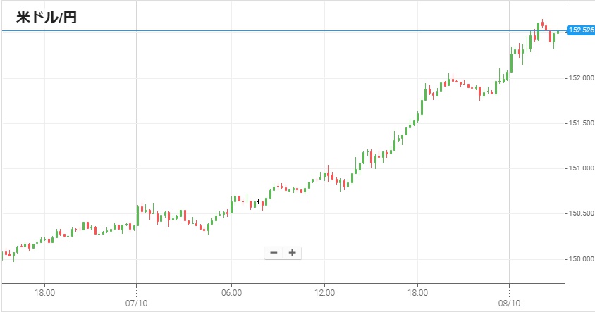 7日から8日にかけて為替市場ではさらに円安が進行した。