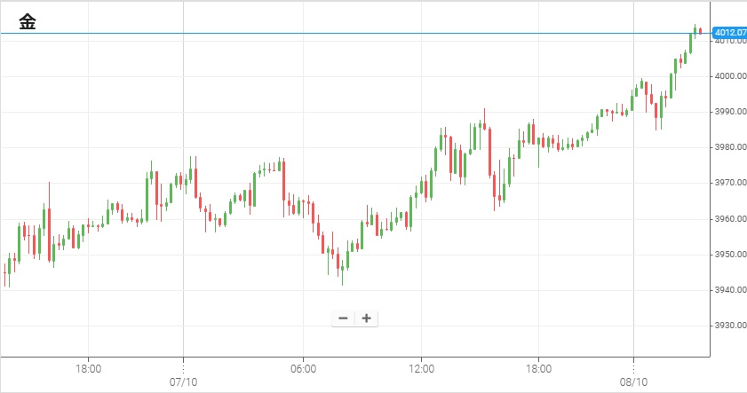 日本は財政懸念、米は政府機関閉鎖など各国の問題が噴出しているために、各国の通貨からの逃避資産として金が好んで買われて価格が高騰している。7日朝方には3,960ドルだったNY金は日中は3,900ドル台後半で細かい上下を繰り返した後、夜から8日未明にかけて上昇。8日午前中にはついに節目の4,000ドルの大台に乗った。