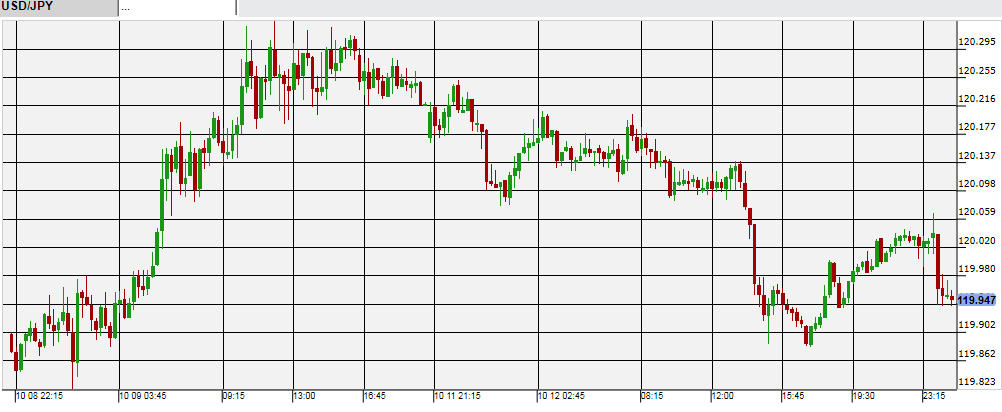 週明け120円台前半から始まった米ドル/円は12日の日中にはあまり材料がなくその水準で横ばい。だが日本時間午後11時頃になって原油が急落すると、それに合わせて米ドルも数十銭下げて119円台後半になった。ただ全体的に見るとあまり動きがない1日だった。米利上げについてロックハート・アトランタ連銀総裁が「今年中の利上げを支持」と発言したが、影響は限定的だった。
