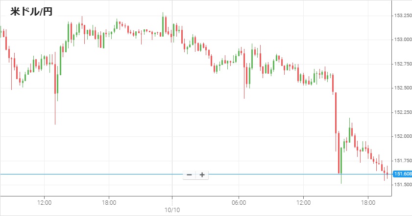 今週は高市氏の政策への懸念から急激な円安が進み、9日夜から10日未明にかけて1ドル=153円をつけた。だが公明の連立離脱によって高市氏が総理になれなくなる懸念から、10日朝方に153円だったレートは日中に円高が進行。午後3時過ぎに正式に離脱が発表されると数十銭円高に動いたが、すぐに反発してきた。そして夜にトランプ大統領が対中関税の引き上げについて発言すると、直後に1円ほど円高になりそのまま151円50銭付近で今週を終えた。