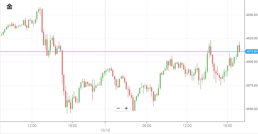 FRBの利下げ観測や米政府閉鎖などを材料に最近急上昇が続いてきたNY金は、9日夜に4,050ドルまで上昇したもののその後は調整売りが出て100ドルほど下落した。10日日中は目立った材料がなく3,900ドル台後半で細かい上下が継続。そして日本時間の午後12時頃にトランプ大統領が対中追加関税について発言すると、米ドルの急落とは逆に金は買われ今週の終値は4,010ドルだった。