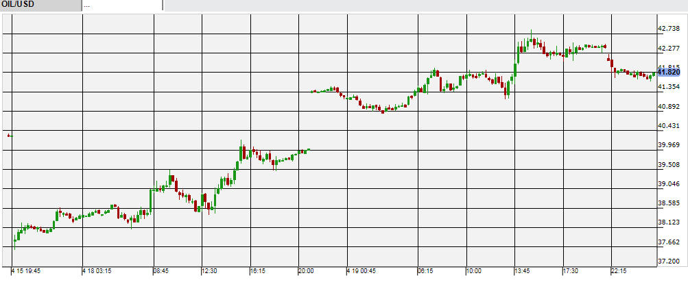 週末の産油国の会合で生産水準凍結に合意できず18日は一時37ドル台に下落したNY原油だが、その後は反騰。また週末から行われているクウェートの石油労働者のストが、原油の供給懸念を拡大し価格上昇を後押しした。さらにナイジェリアの石油パイプラインで火災が起きたという情報も流れ、それらの材料から一時42ドル台まで上昇した。