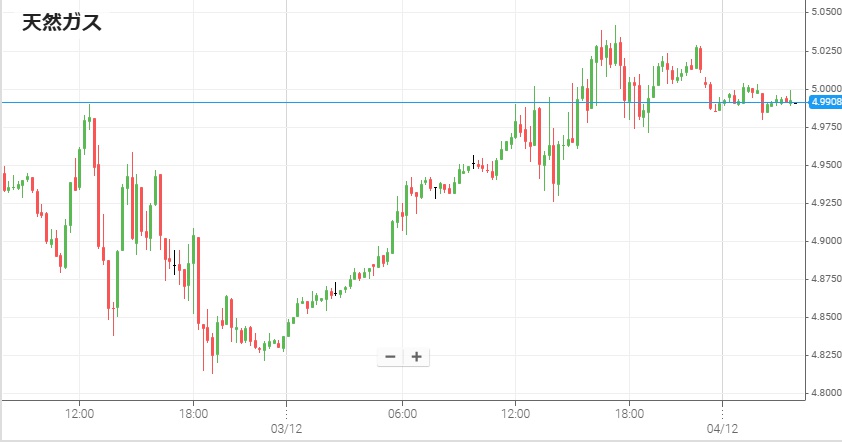 今年の冬は気温がかなり低下し暖房需要が増大するとの観測から、最近の天然ガス価格は上昇している。2日夜に100万BTU=5ドルに接近した後反落して3日朝方には4.8ドル台前半だったNY天然ガスは、日中から夜にかけて再度上昇。午後10時頃には2022年暮れ以来3年ぶりに5ドルをつけ、その後も小幅上昇して4日未明には一時5.04ドルをつけた。