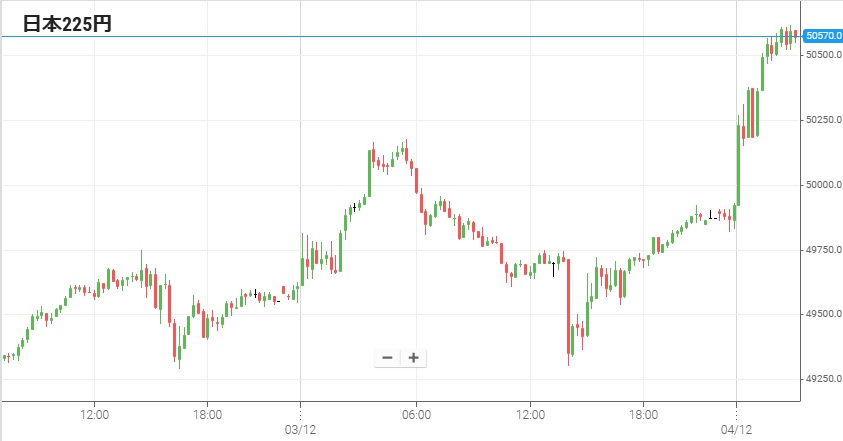 週明け1日に日銀植田総裁が12月の会合で利上げを検討すると示唆する発言をしたことで、この日の日経225平均は1,000円近く暴落して終了した。しかし円高が止まったこともあり暴落地合は翌2日以降まで引きずらなかった。3日になると273円高の49,540円で寄り付き。前場に小幅上昇した後昼休み中に先物が買われて後場開始後には50,000円を突破。午後2時頃からは多少反落して終値は561円高の49,864円だった。