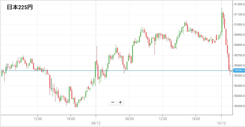 前日のNYダウは215ドル安で終了したものの、この日の東京株式市場では日経225平均は96円高の50,677円で寄り付き。しかし寄り後に50,400円台まで下落し、その後は前場から後場にかけて50,500円を挟んで上下。終値は74円高の50,655円だった。夕方以降の先物は円安を材料に上昇し、一時は51,000円を回復。だが10日朝方になると数百円の急落が見られる。