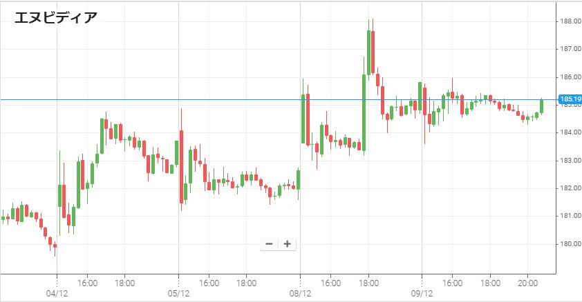 米中の政治的対立のあおりを受け、エヌビディア製の半導体はここ数年中国への輸出禁止が問題となっていた。だが9日朝方になって、トランプ大統領がエヌビディア製半導体の中国への輸出再開を決定したとの情報が流れた。8日を185.55ドルで終えていたエヌビディア株は、この情報にも関わらず9日は序盤から軟調な展開となり主に184ドル台で推移。終盤まで目立った上昇はなく、0.3%安の184.97ドルで終了した。