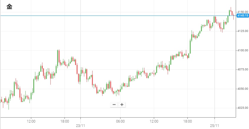 金利を生まない資産である金は、中銀が利上げをすると相対的価値が下がり売られやすくなり、逆に利下げだと相対的価値が上がり買われやすくなる。先週21日のFRBのNY連銀総裁が利下げ支持の発言を行ったことと、24日にウォラー理事も同様の発言を行ったことで24日は堅調な動きとなった。4,070ドル付近から今週をスタートしたNY金は、日中は小幅下落して一旦4,050ドルを割った。だが午後から夜にかけて上昇し、25日未明に4,100ドルを突破しても止まらず25日午前には4,150ドルをつけた。