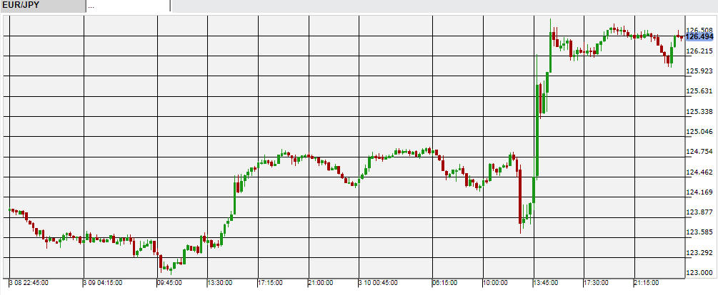 すでに述べたように、10日夜にECBが追加緩和を発表。発表直後にはユーロ/円が124円台半ばから123円台半ばまで下落した。しかしその後のドラギ総裁の会見で、「現時点で追加利下げは見込まず」と追加利下げを否定する発言があった。そのため会見時から大幅なユーロ高になり、11日未明には126円台半ばまで上昇。