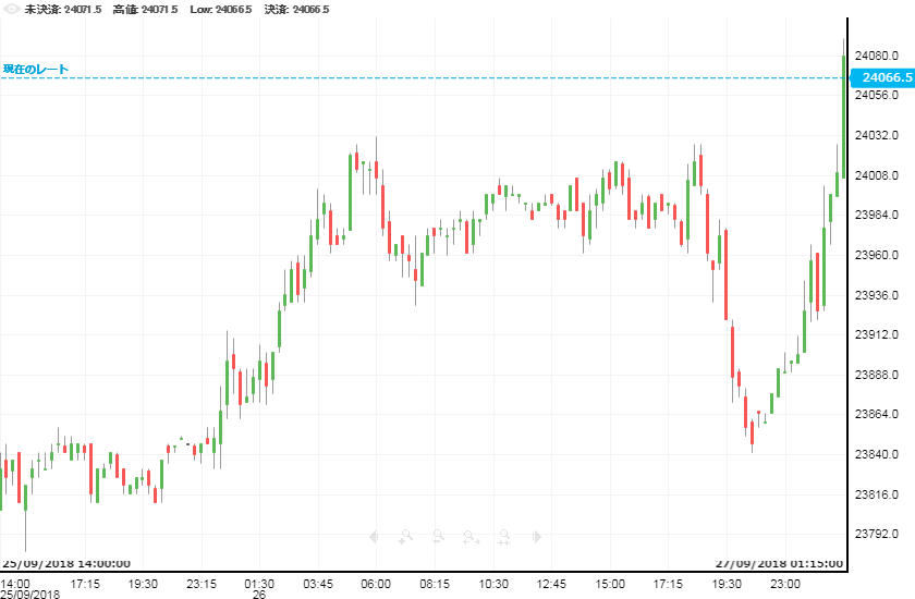 前日のNY株式市場が下落したにも関わらず、円安を受けて日本の株式市場はこの日も続伸した。日経225平均は94円安の23,846円で寄り付いたものの、前場から堅調な相場が持続。後場になるとさらに上昇し、午後2時頃には1月以来8ヶ月ぶりとなる24,000円台をつけた。終値も93円高の24,033円と、24,000円台をキープして終了。これで8日連続の上昇となった。