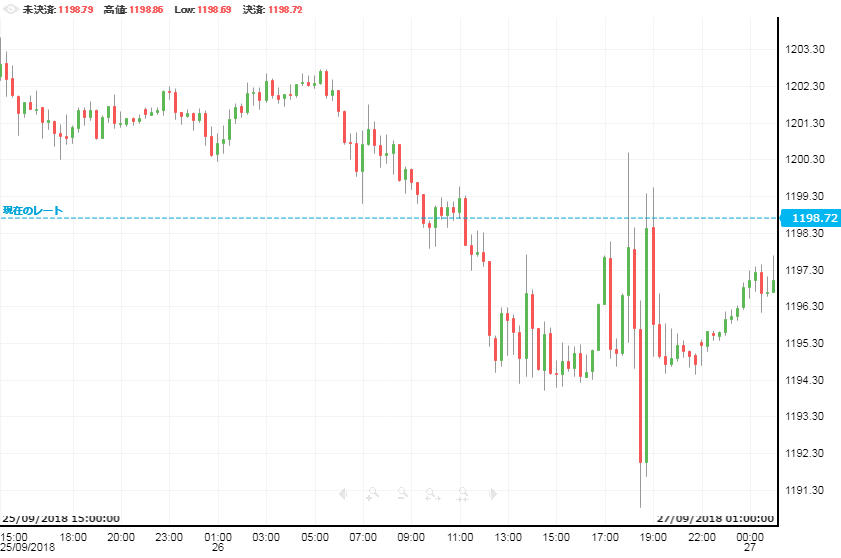 トルコのエルドアン大統領が前日に国連で演説をした中で、中銀の独立性を尊重するような発言があった。この発言によってトルコ中銀は今後も必要なら利上げを行うことができるという見通しが広がり、この日のトルコリラは全体的に堅調。26日朝には1米ドル=6.18リラ付近にあったレートは、日中から夜にかけて一貫してリラ高が続き夜には6.06リラまで到達。その後は27日朝に欠けてややリラが反落した。
