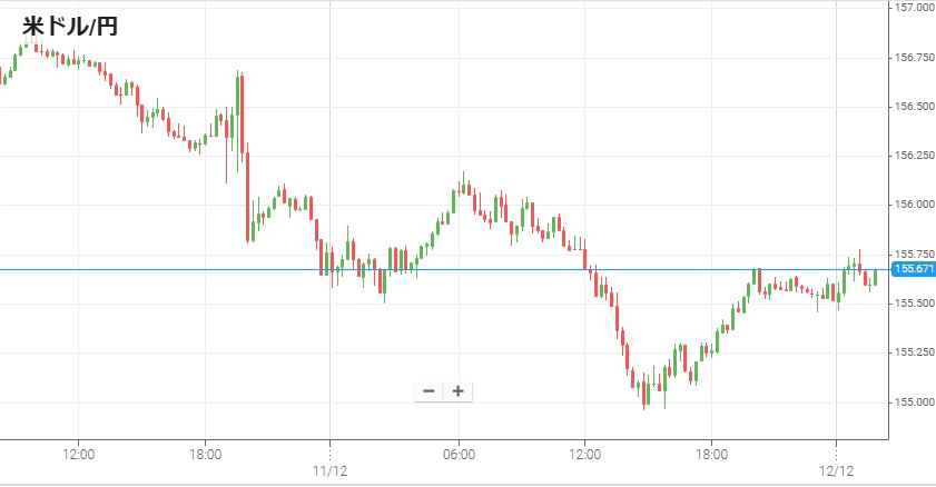 FRBが利下げを発表し、同時に今後の利下げ継続に含みを持たせたことや短期債の購入を発表したため、発表後の為替市場は円高・米ドル安基調となっている。11日朝方までに1ドル=155円70銭台まで円高になったレートは、午前中はやや円安に動き一旦156円を回復。だが午後2時から再度円安になり、夕方以降に加速。午後10時半に発表された米新規失業保険申請件数が予想より多かったことも米ドル売り材料となり、午後12時頃には一時155円を割って154円台をつけた。