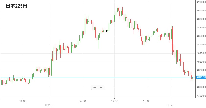 米では10月からの予算案に民主・共和両党が合意することができず、10月1日から政府機関の一部が閉鎖されている。そして9日にはつなぎ予算案について7回目の採決が行われたものの、可決することができなかった。政府機関閉鎖のためにNY株式市場はこの日も軟調な動きが続き、ダウ工業平均は一時300ドル以上下げた末に4日連続マイナスとなる243ドル安で終了した。