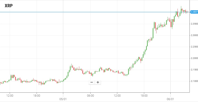 5日になって昨年11月に初めて上場したリップルの現物ETFのデータが発表され、すでに12億ドル(約1,870億円)以上の資金が流入したという好調な数字が出た。5日の仮想通貨市場全体の地合が良かったわけではないが、リップルはこのデータなどを材料に買われた。5日日中は330円台で横ばいだったレートだが、夜から6日未明かけて10%以上上昇して朝方までに370円を超えた。(注:チャートは米ドル表記です)